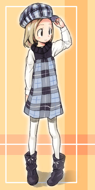 チェックのワンピとキャスケット
