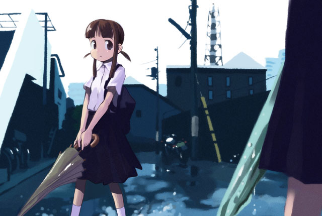 雨上がりの道端で、いきなりちゃんばらを始める素子と千夜。
