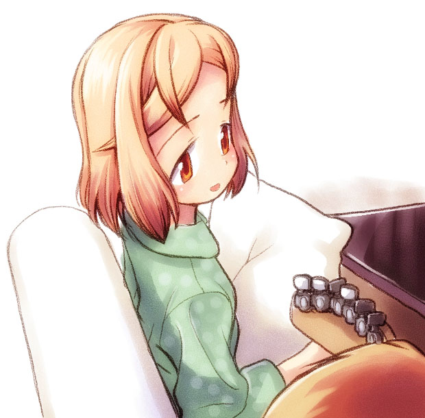夜、父親のギターでくつろぐハナ。